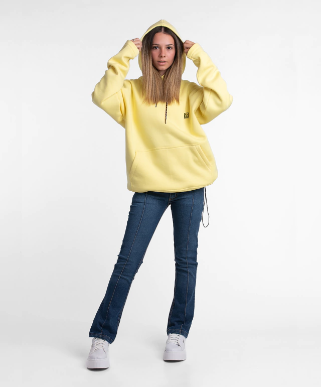 U2076. Buzo unisex en frisa de algodón con capucha, bolsillo en delantero con estampa en frente. Tanca de ajuste en ruedo y cordón de ajuste en capucha.